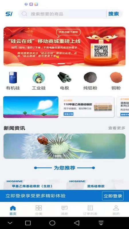 硅云在线APP是一款非常不错的手机网上购物平台,涵盖了丰富的硅类产品以及相关信息,人们随时可以通过平台便捷的交易,支持多种交易方式,满足大家的需要。