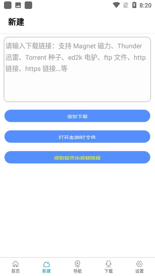 新建任务:支持磁力链接,各种类型的bt的资源可以让用户在这里随意的下载。