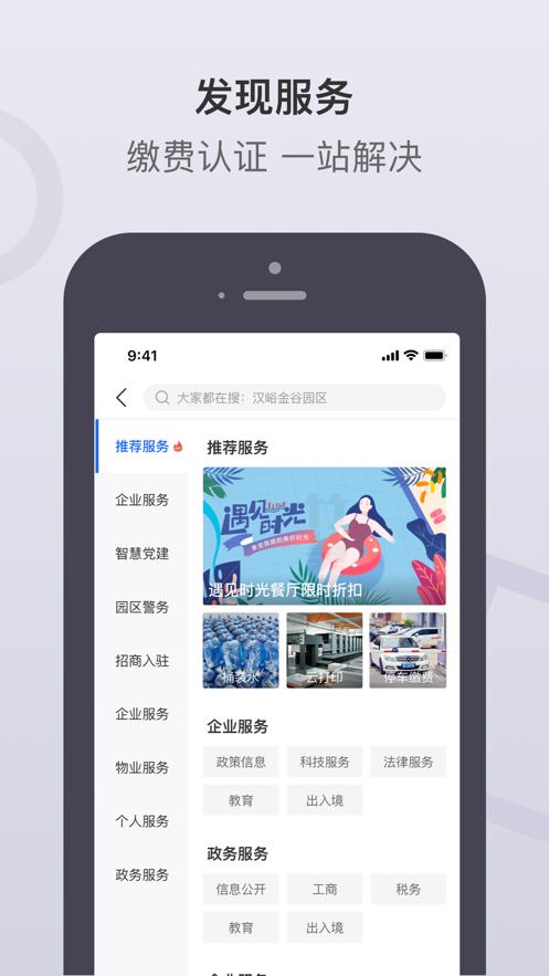 2、企业经营服务:为园区的企业提供人力资源服务、科技创新服务、商务办公服务、金融业务服务和政策对接服务,为企业内部提供通讯录、门禁、缴费、人员组织管理等服务,帮着企业对接无限资源、助力企业成长。