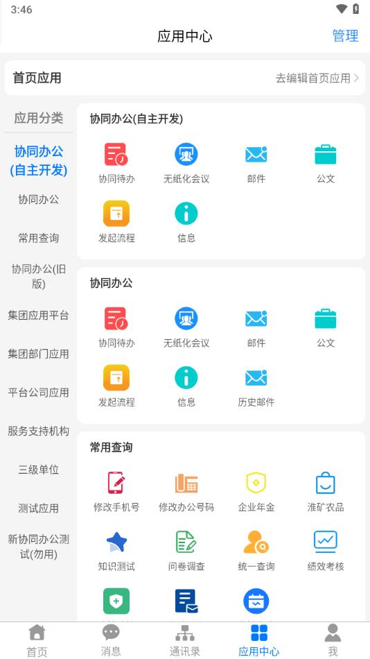 淮河能源app是专为广大企业员工制作,软件拥有首页,消息,通讯录,应用中心,我等功能板块,可以帮助员工更好的移动工作学习生活。