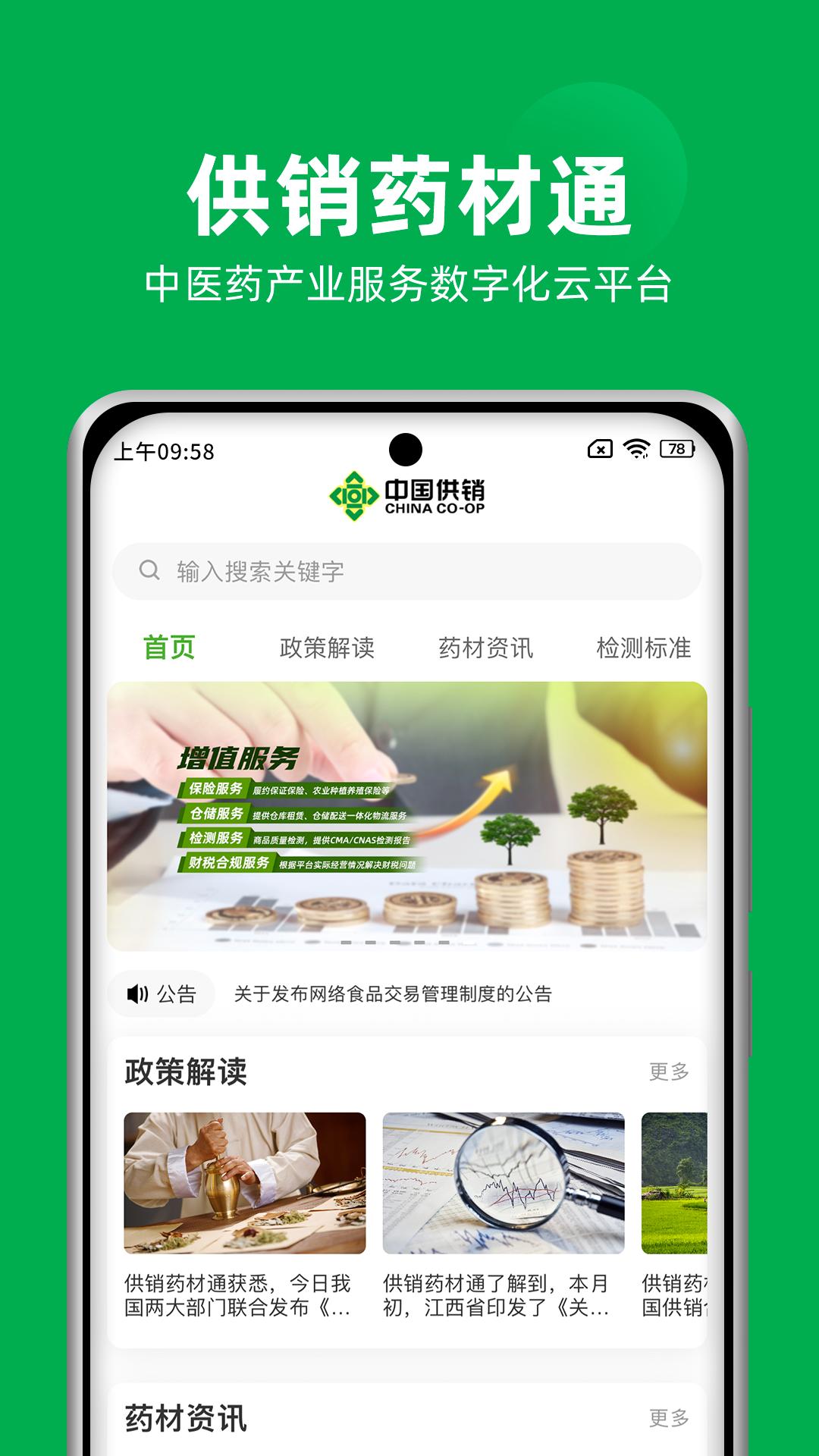 供销药材通app安卓版是专为中药材产业制作,软件拥有中药材交易,供求信息发布,药材行情,行业资讯等等功能服务,需要的朋友欢迎前来下载使用。