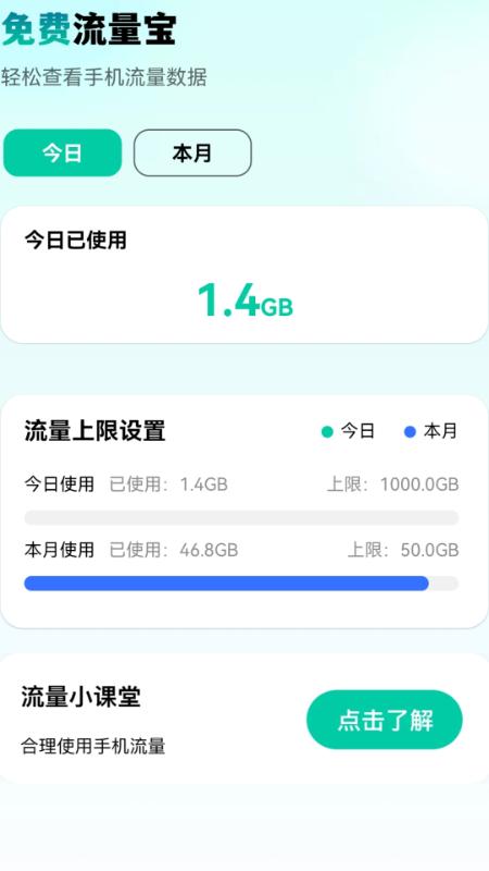 3、设置当天和本月的流量上限,可严格控制自己日常玩手机的时间;