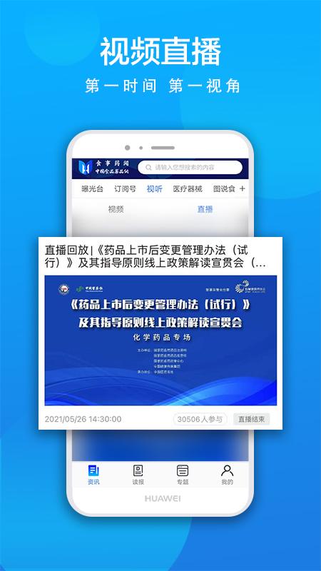 食品、药品、健康领域高清原创短视频,及时播、抢先看。互动直播让您第一时间火速直击新闻事件,边看现场边参与直播互动,第一时间、第一视角看食药事。