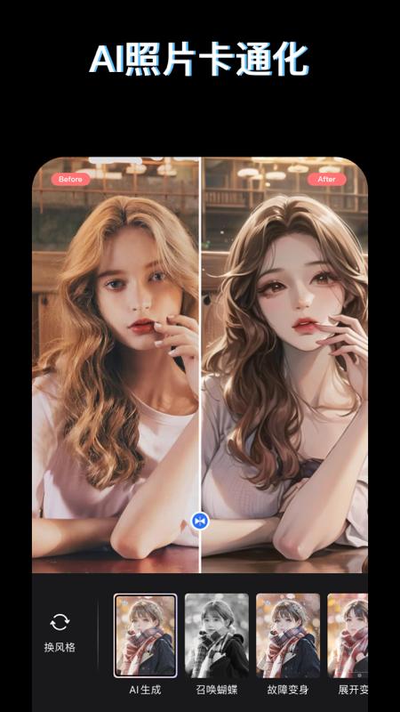 卡通照片: 一键将照片变成卡通风格,让你的照片变得更加可爱有趣。
