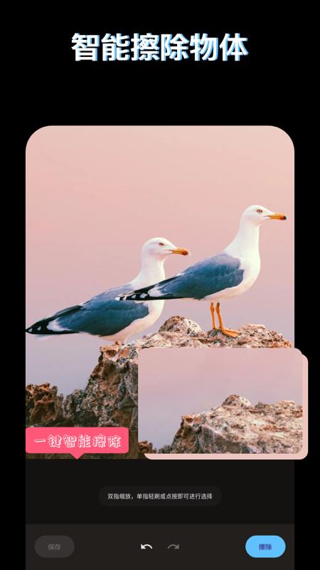 魔术擦除: 智能AI擦除技术,轻松去除照片中的瑕疵和不需要的物体,让你的照片更加完美。
