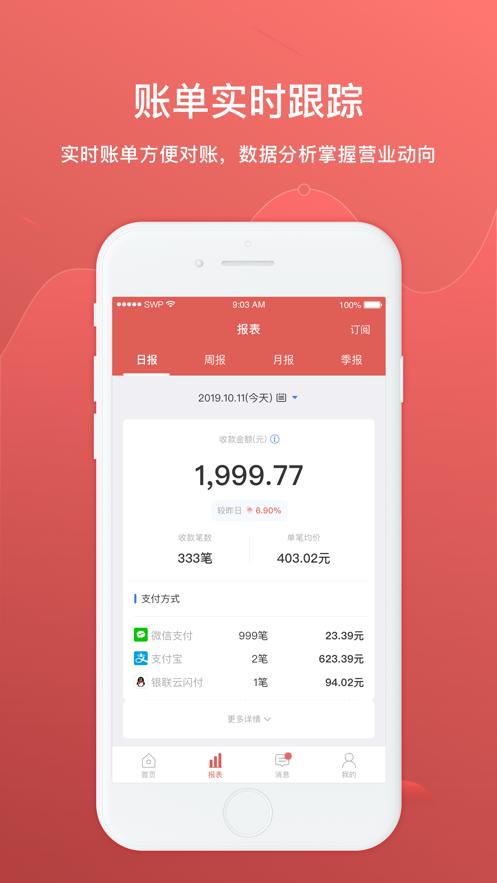 【收款】商户可快速开通多种移动支付收单方式,支持消费者扫码支付、刷卡支付,收款便捷;