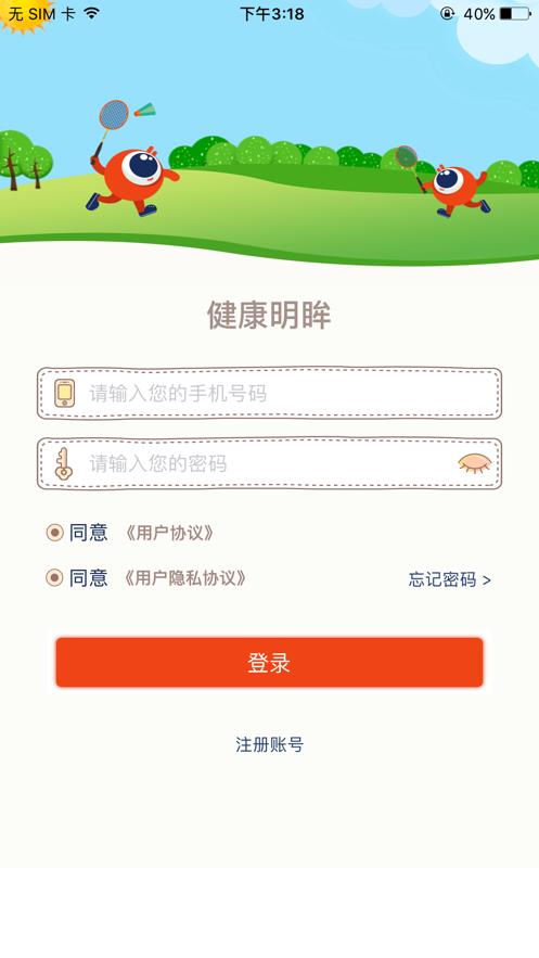 下载安装明眸APP,通过手机号及验证码注册账号登入。