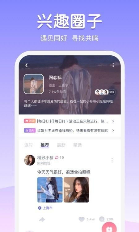 1、专门为年轻人设计的聊天交友软件,具有群聊派对、聊天互动等多种功能,极大地方便了年轻人的社交需求;