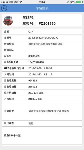 中国重汽智能通车队管理系统包括位置控制、状态管理、销贷管理、远程诊断四大系统功能。