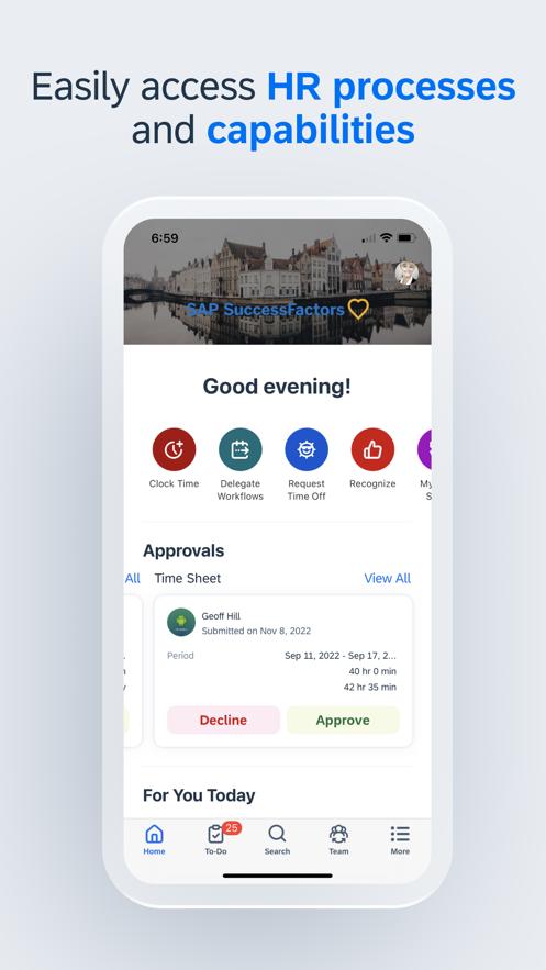 SAP SuccessFactors安卓下载是一款移动工作助手,软件拥有沟通,审批,请假,行程等等丰富功能,可以帮助用户更高效智慧工作。