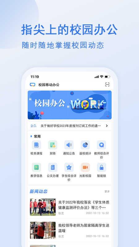 校园移动办公app是一款功能十分强大的校园服务办公平台,平台拥有丰富的功能及服务,精细化管理,可以随时随地办公,助力更好的智慧教育,有需要的朋友可以来下载。