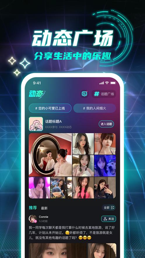 其次,我们有一个动态话题广场。在这里,你可以参与到热门话题的讨论中,发表自己的意见和看法,与其他用户进行互动交流。无论是政治、时事、娱乐还是体育,你都能找到相关的话题,并通过语音交流来展示自己的观点。
