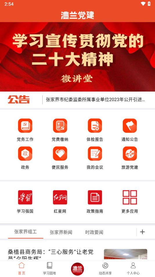 澧兰党建APP是张家界智慧党建移动服务平台,平台拥有党务工作,党费缴纳,通知公告,学习园地,动态共享等等丰富功能,可以助力更智慧党建。