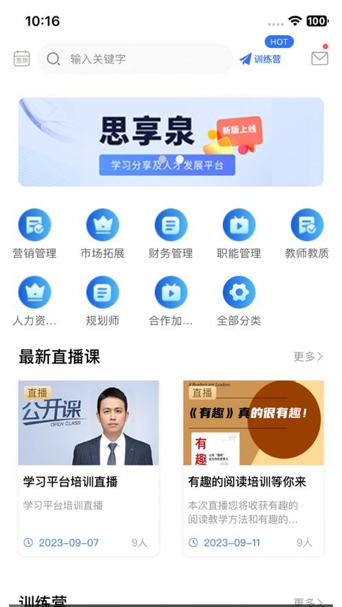 思享泉app是一款在线培训学习平台,平台拥有丰富的学习资源,多样的学习方式,包含在线学习,线上直播,训练营等等,可以帮助更好的学习培训提升能力。