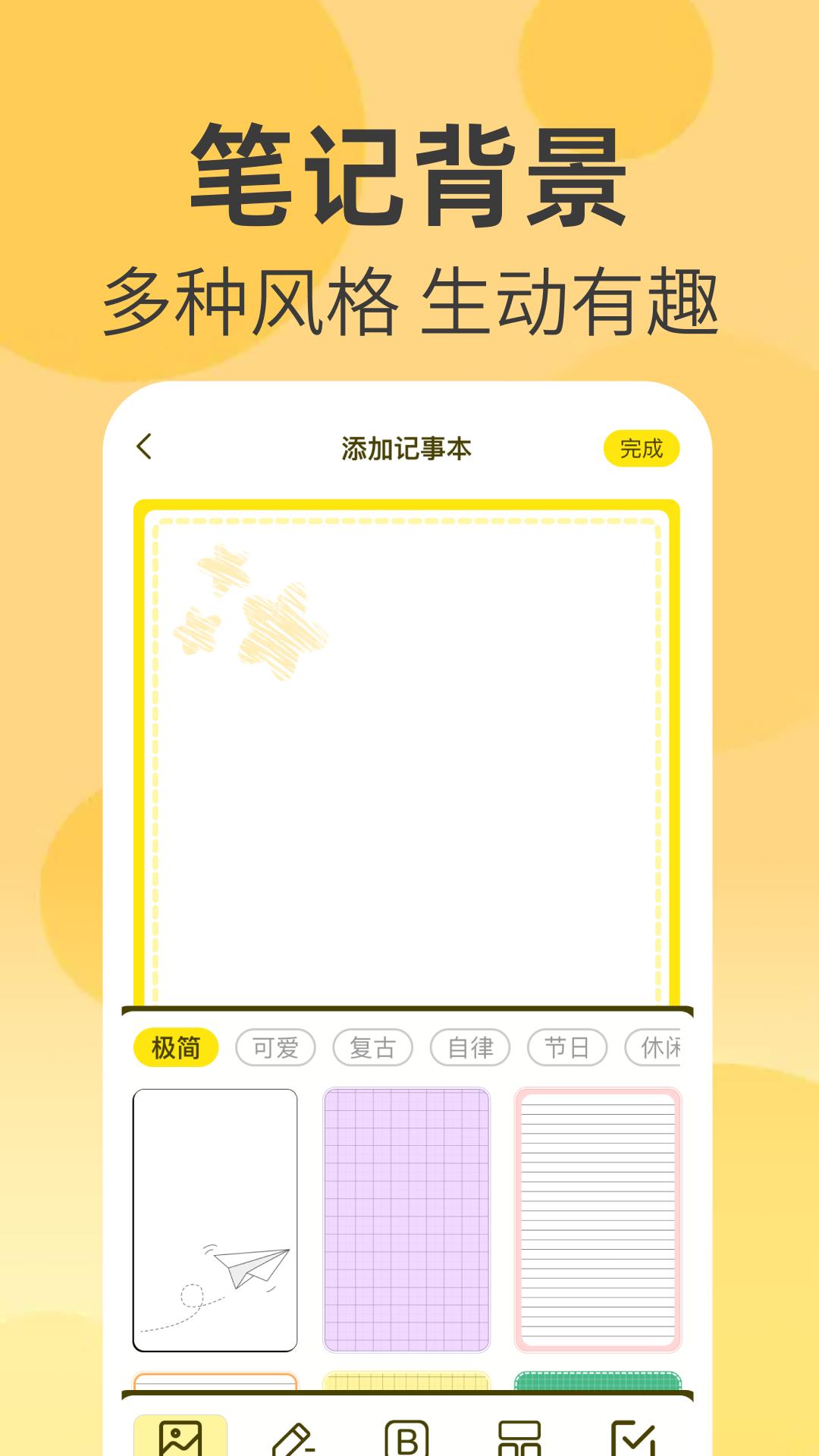 精美背景设置:多款精美背景可供选择,支持自定义字体大小与颜色,打造专属的记事本风格。