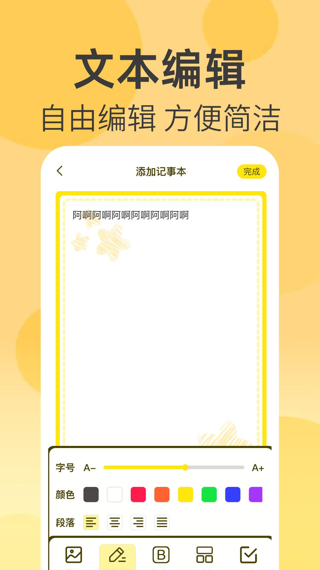高级编辑功能:提供丰富的文本编辑工具,如字体大小、粗细、背景颜色、列表等,让笔记更加美观易读。