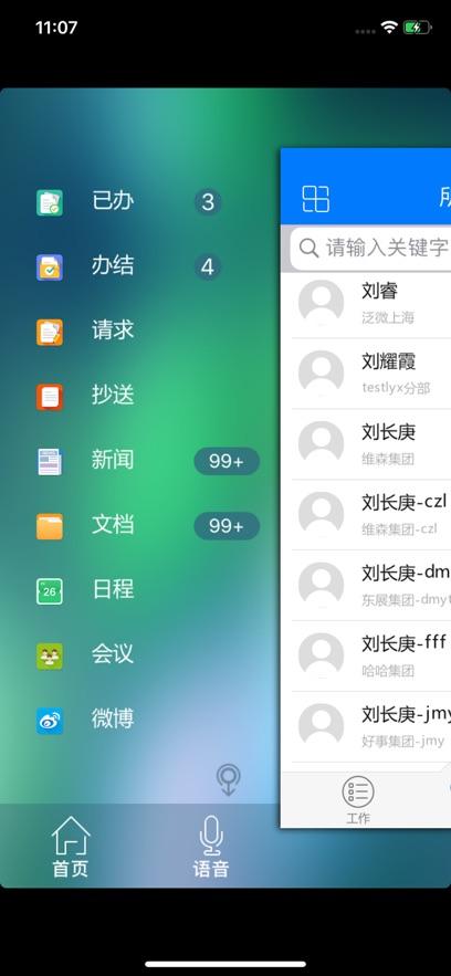 用户可以通过“E-Mobile5.0”在手机上突破时间和地域的局限, 编写工作微博、处理流程、阅读公司最新动态, 通过语音查找人员。