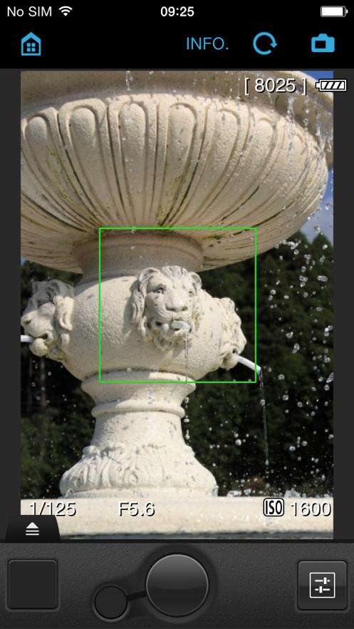 在EOS Remote中观看来自相机的实时图像时,可以遥控设定对焦,调整拍摄值并释放快门。