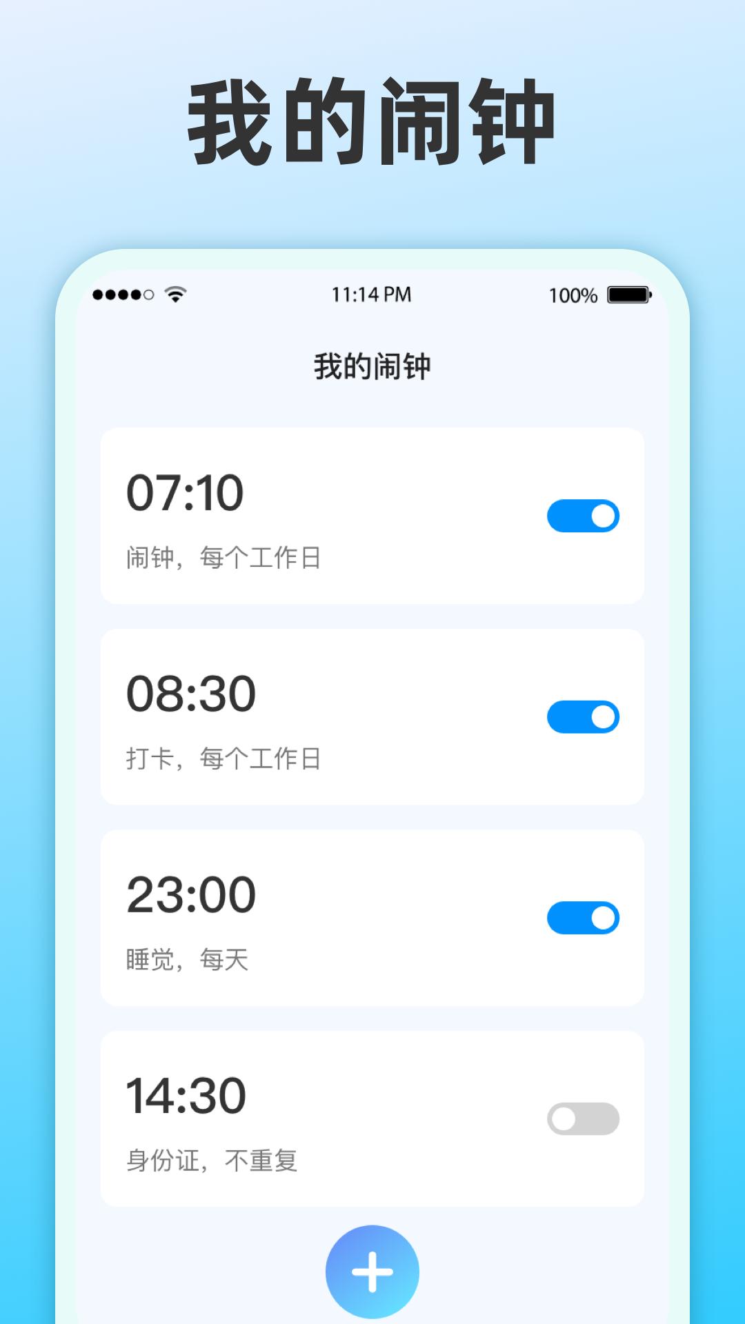 4、多个闹钟: 支持添加多个闹钟,方便在不同时段提醒,帮助用户更好地完成任务。