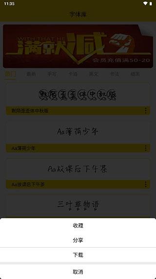 2、看中了其中一种字体,点击字体旁边的三个点,我们就可以收藏、分享、下载了。
