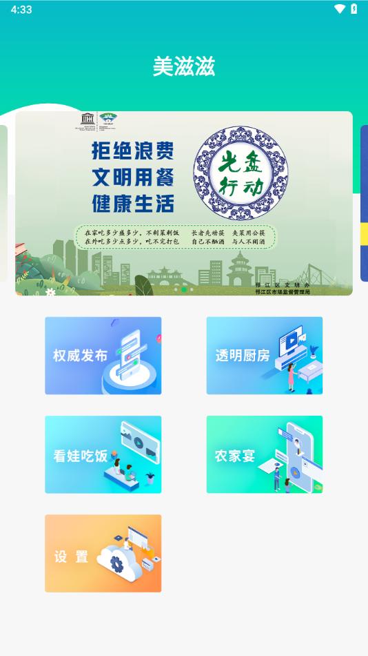 美滋滋app下载是扬州市邗江区市场监督管理局官方请推出,软件拥有权威发布,透明厨房,看娃吃饭,农家宴等等功能服务,可以帮助更安全健康餐饮。