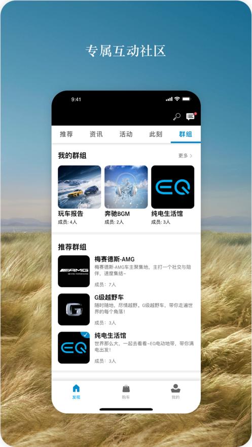【社区】这里是梅赛德斯-奔驰车友与粉丝的聚集地,您可以随心参与品牌活动、体验品牌文化、随时随地分享精彩瞬间、加入感兴趣的群组、查看动态并进行互动。