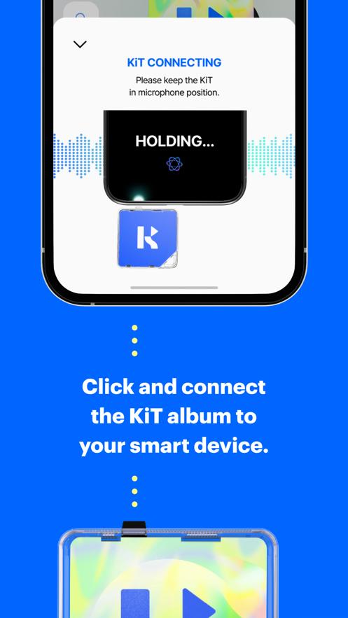 - 打开KiT Player,将KiT专辑的配件-KiT switch拿到移动设备的下端,将它轻轻按下,听到‘咔哒’的声音。