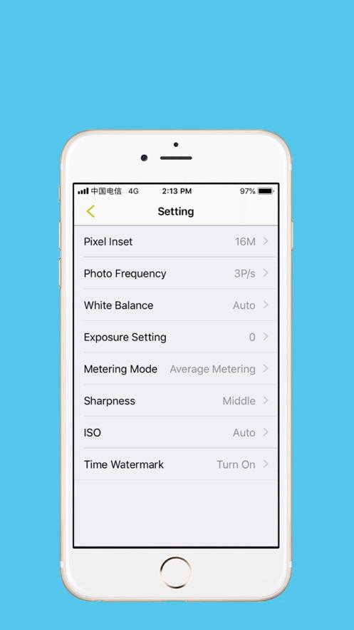 运动DV终端设置:从应用程序直接调整曝光、白色平衡和其他设置,确保最佳结果。