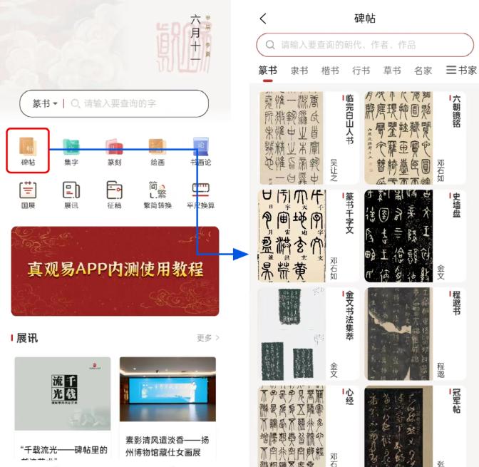 【真观易书画App】是一个集合了在线书法、绘画、篆刻查询字典;免费高清书法、碑帖、绘画、篆刻临摹工具,艺术展览、参展信息、国展信息分享的综合类书画工具App。