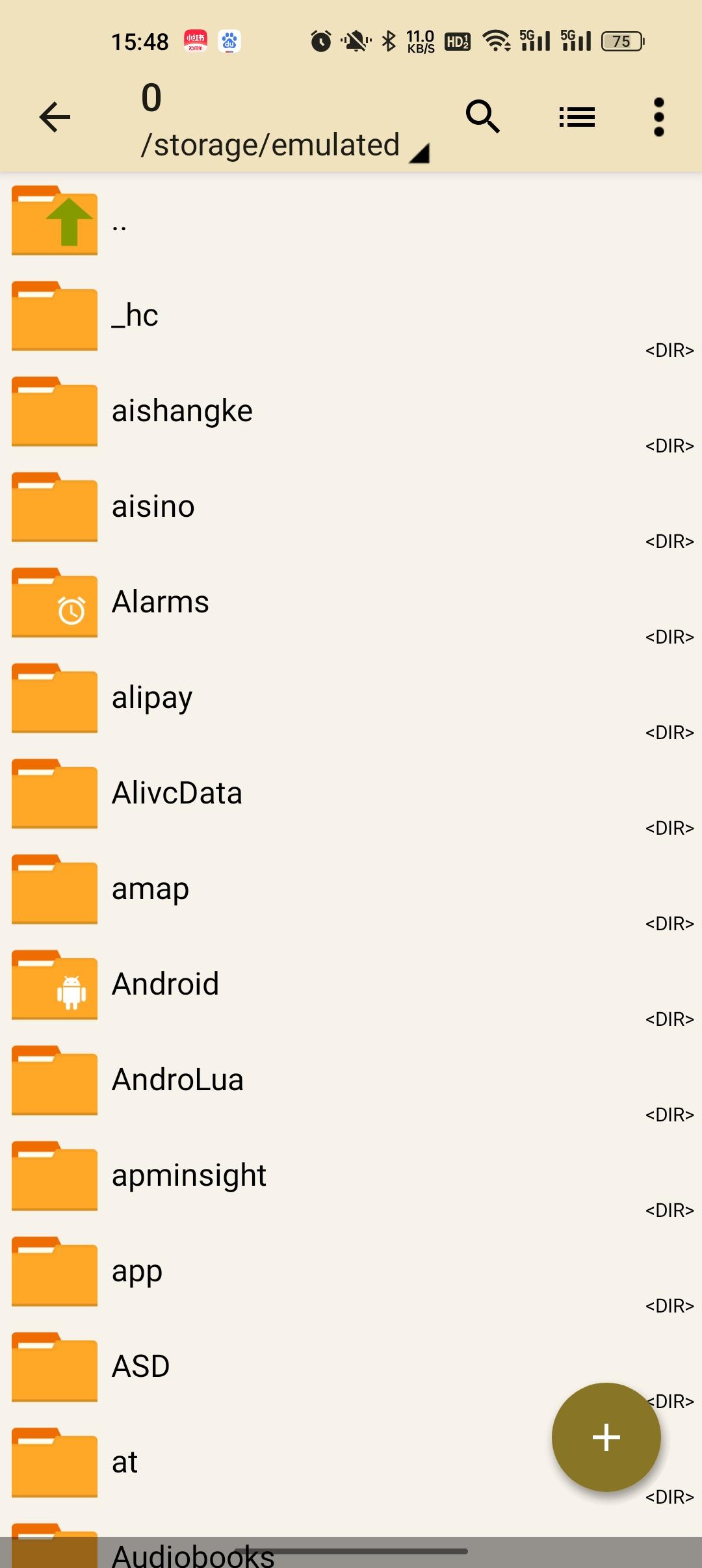 3、在文件列表中点击文件或文件夹图标是选中,点击文件夹名是进入,长按弹出菜单。