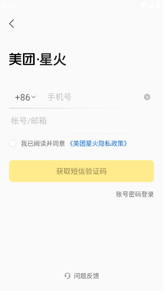 输入手机号,勾选我已阅读并同意 《美团星火隐私政策》,点击获取短信验证码