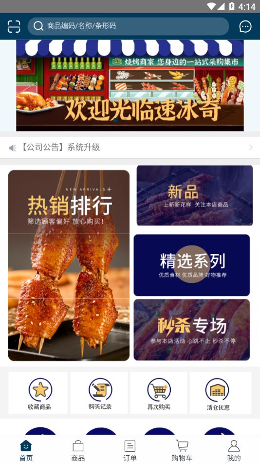 速冰奇商城,烧烤食材平台,上海领先的烧烤全品类一站式供应链B2B移动电商平台。