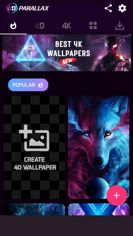 超级4d视觉(4D Parallax Wallpaper)是一款十分炫酷的动态壁纸软件。软件具有原始的多层全息幻觉 4D 视差照片动态壁纸,能让你的手机壁纸充满立体感,而且这款app还自带3D壁纸编辑器,你可以编辑出只属于自己的3D立体壁纸,快来下载使用吧。