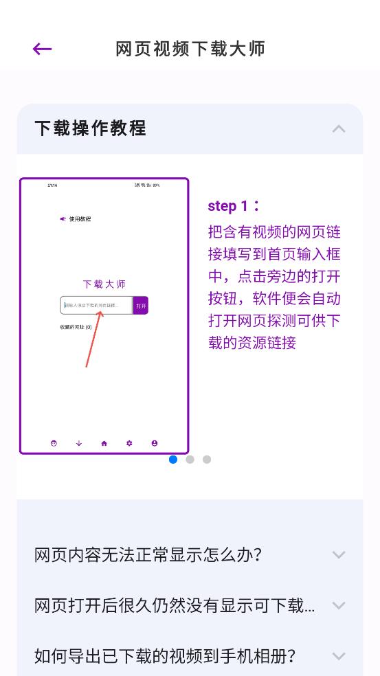 网页视频下载大师安卓版是一款支持多种视频格式播放的视频播放软件,也是一款只要用户知道视频的具体的网址就可以将视频下载下来的下载软件,软件中的界面很整洁,干净的界面也让用户能够一眼就看到全部的功能,软件简单好用,是一款使用体验极佳的软件。