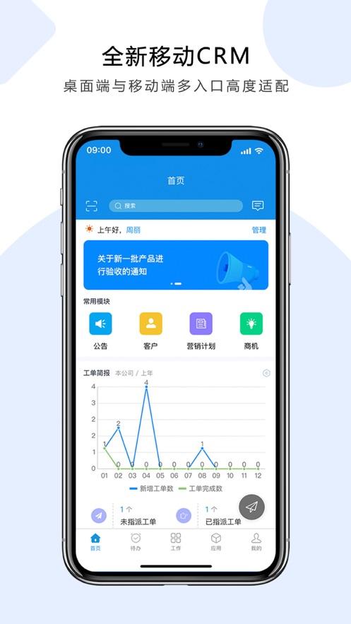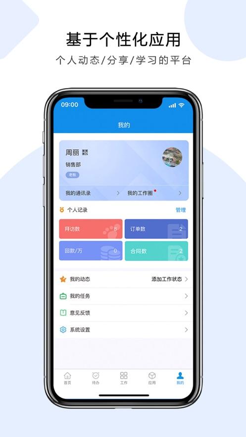 鹏为crm软件app下载是一款客户关系管理软件,软件拥有首页,待办,工作,应用,我的等等功能板块,可以帮助更好的管理经营。