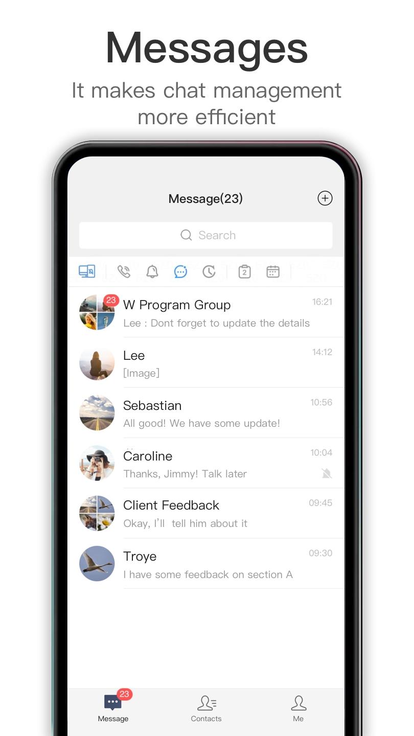 Whalek拼多多是一款移动办公软件,软件拥有即时消息,待办事项,日历,会议等等丰富功能,可以帮助用户更好的移动协同高效工作。