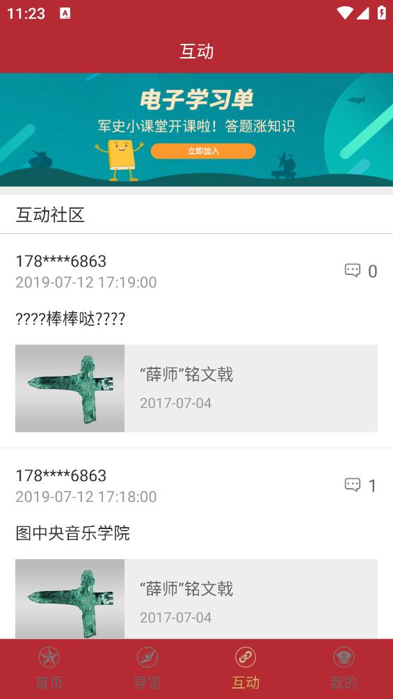 3、平台设有关于军博、资讯动态、展览陈列、参观服务、参与互动、馆藏文物、研究创作共7个一级栏目