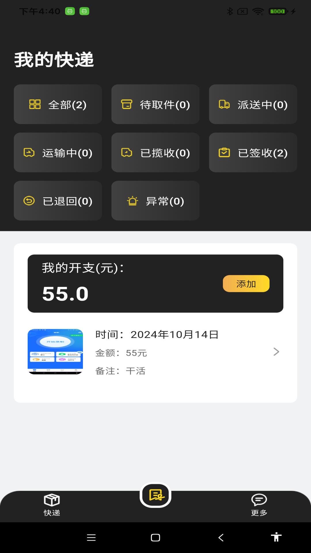 在应用中就能添加记录自己的开支费用,保存自己的消费账单;