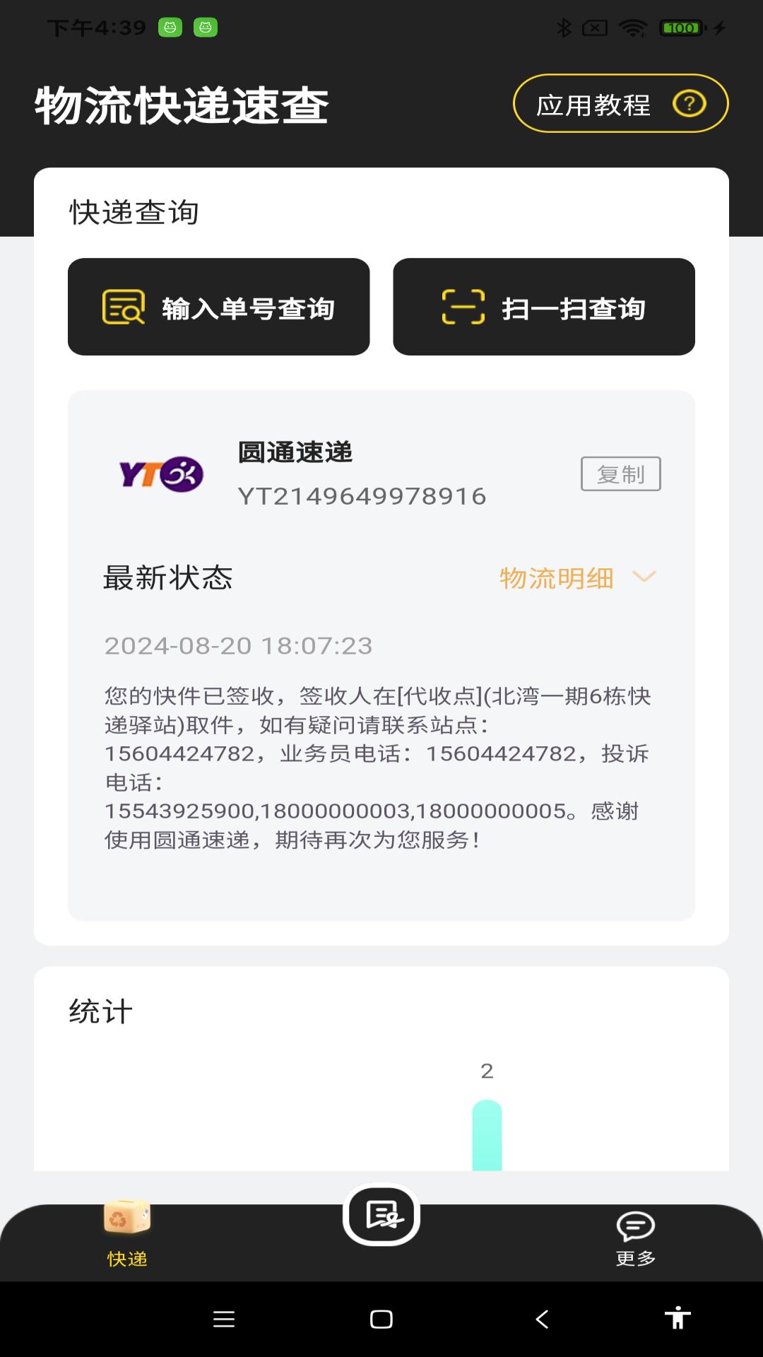 是一款非常好用的快递查询APP。支持申通,顺丰,京东,圆通,中通,汇通,韵达等快递公司,直接输入单号,或者扫描单号查询,就能识别快递公司和历史快递记录。