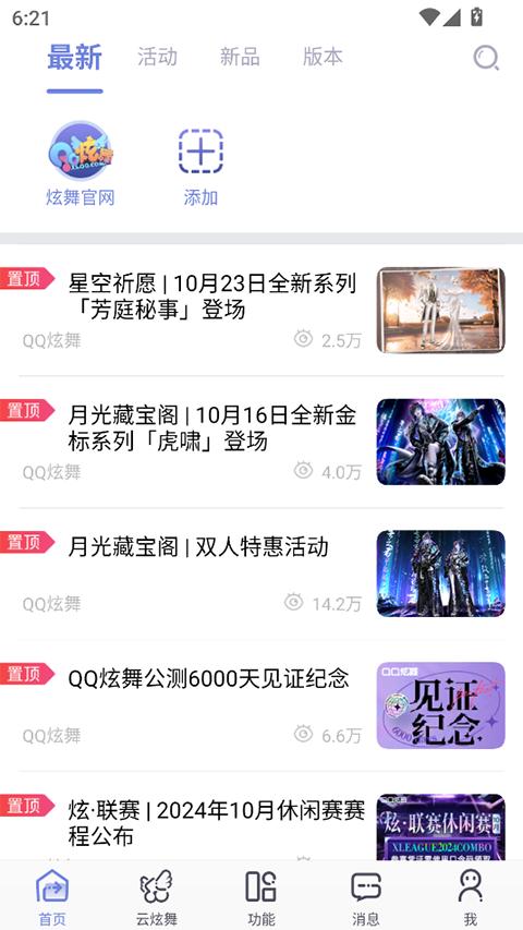 2、然后进入首页可以看到QQ炫舞的最新活动、新品以及版本修改信息等,选择自己感兴趣的内容,点击即可浏览;