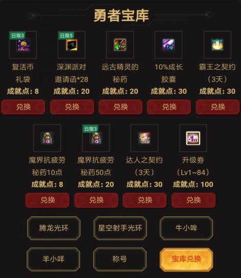 注意:勇者宝库中宝库兑换中的道具游戏家G4及以上就可以兑换,且无折扣。