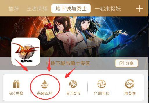 四、领完见面礼,点击进入荣耀战场。(百万Q币、11周年庆、精英赛是限时活动,大家点进去自己感受就好了,这里不做过多说明。)