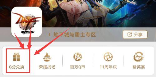 十、此时基本上长期任务和奖励都做的差不多了,此时可以看看自己有没有G分,有的话可以在地下城与勇士专区那里找到G分兑换。