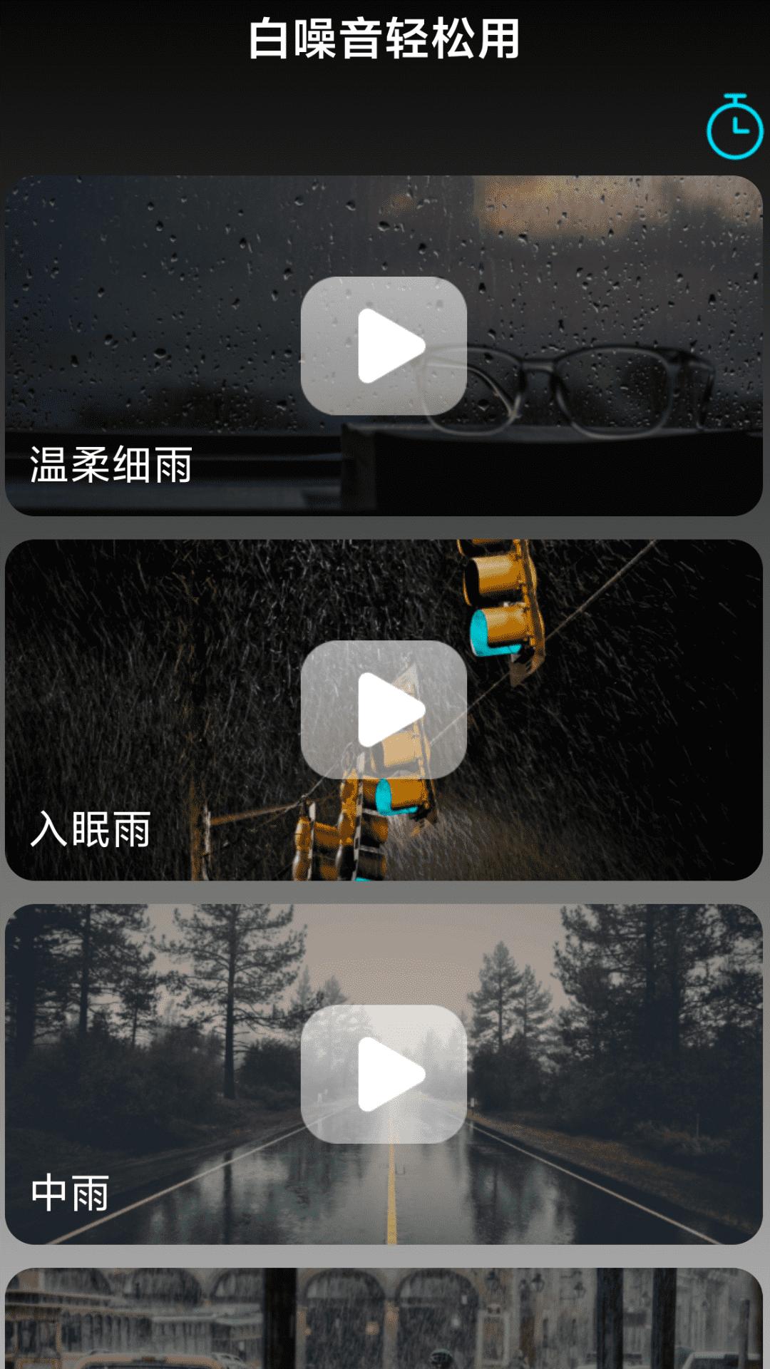 4、白噪音轻松用:在喧嚣的城市生活中,找到一片内心的宁静。提供多种雨声等白噪音选项,帮助您提高专注力,或在夜晚轻松入眠,随时响应您的放松需求。