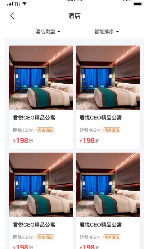 -选择酒店的类型和排序的方式,迅速就可以任意选择房间
