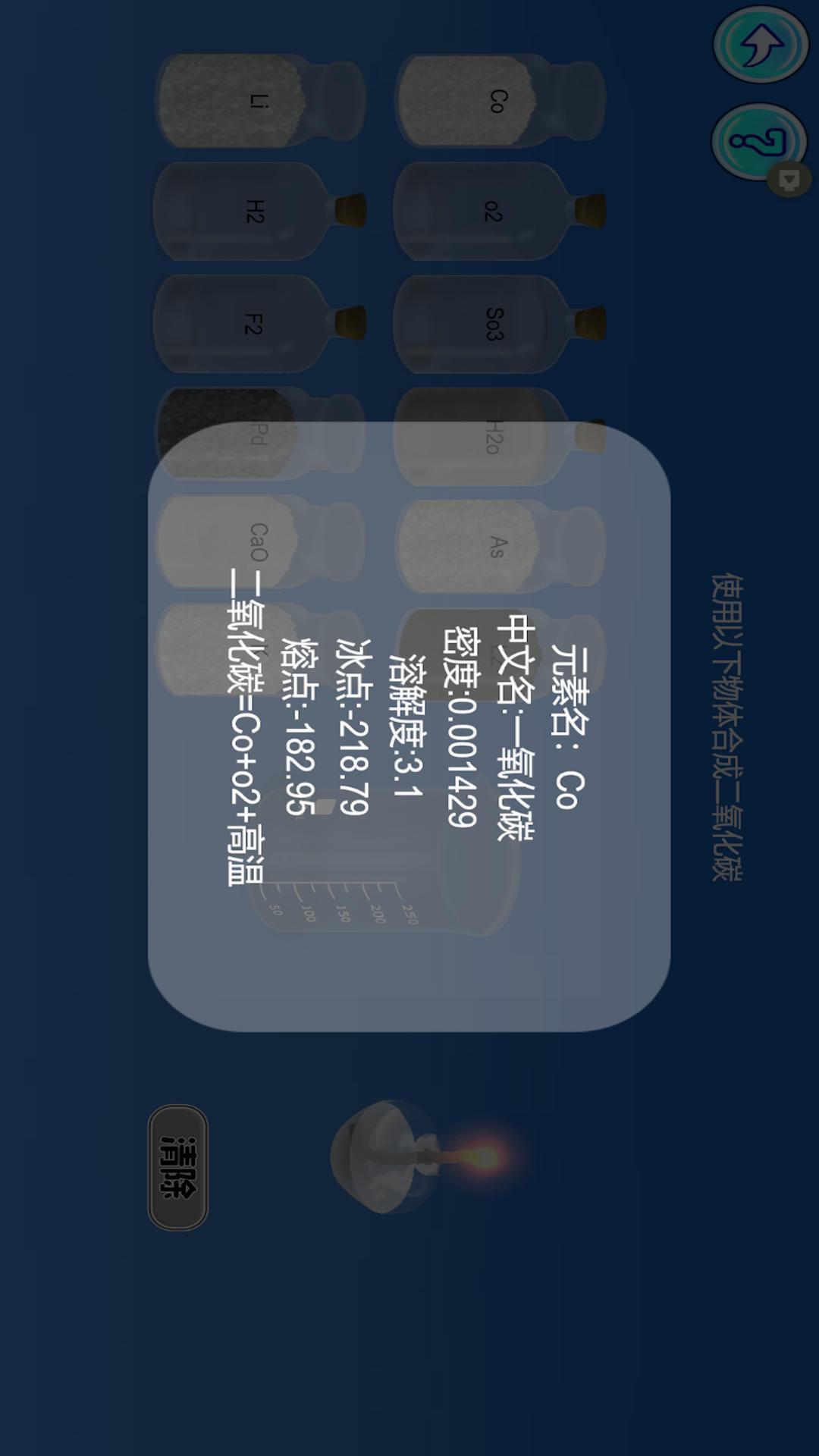 4、任务与挑战模式:除了自由实验,游戏还设有任务模式,玩家需要根据提示完成特定的实验目标,例如合成某种化合物或分离混合物。这些任务既考验玩家的化学知识,也增加了游戏的趣味性和挑战性。