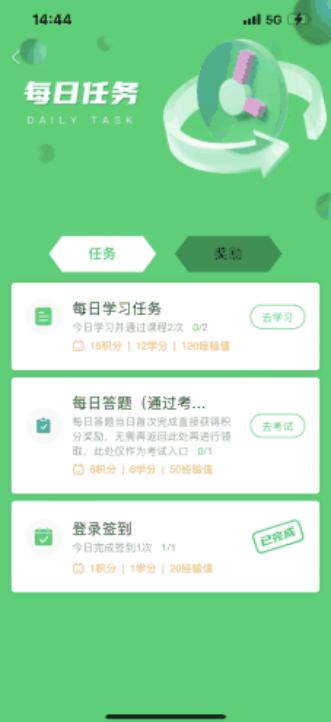 每日学习,采取学分制管理,每日推送新的教材和挑战答题;