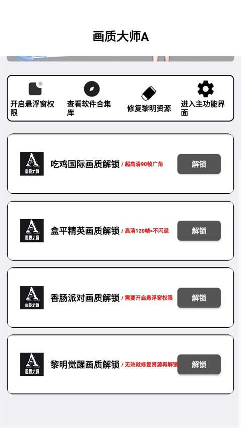 画质大师A下载正版新版是一款当下十分火热的游戏画质工具软件,它可以帮助您修改各种画质,轻松解锁更高清画质。让你全程高帧游戏,毫无阻碍,来试试吧。