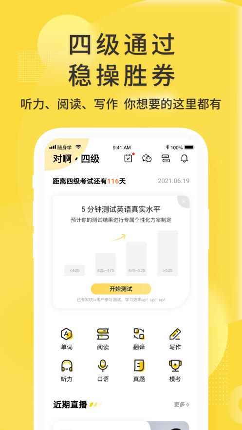 真题题库+摸底测试+智能学习,环环相扣,帮你轻松过四级