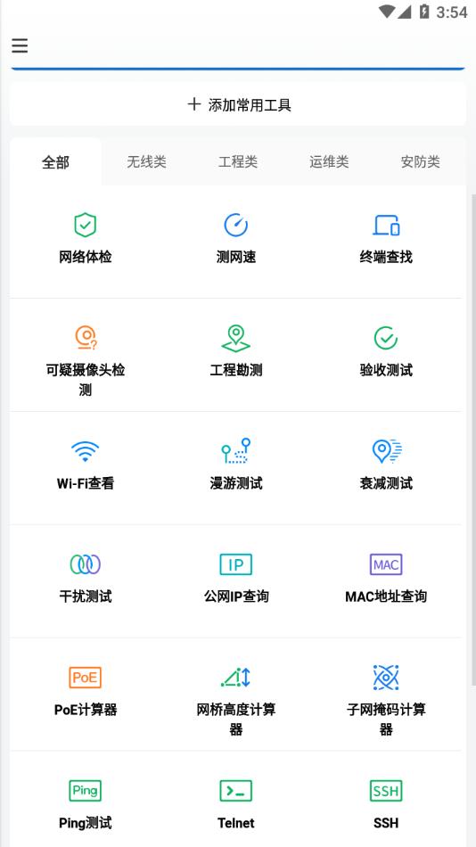 1、无线类小工具:网络体检、测网速、终端查找、摄像头检测、Wi-Fi查看、漫游测试;